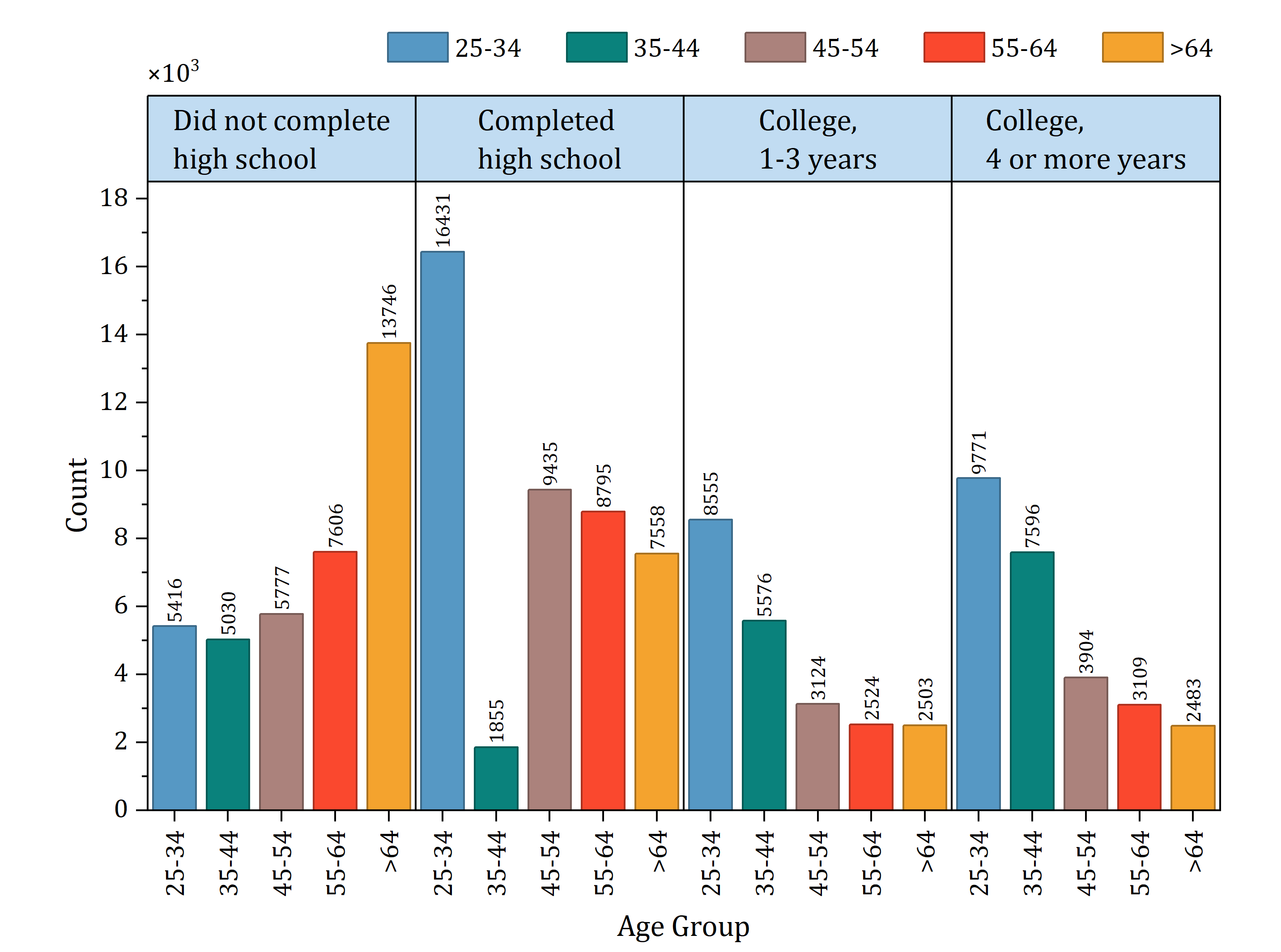 Häufigkeitendiagramm mit geschachtelten Anzahlen