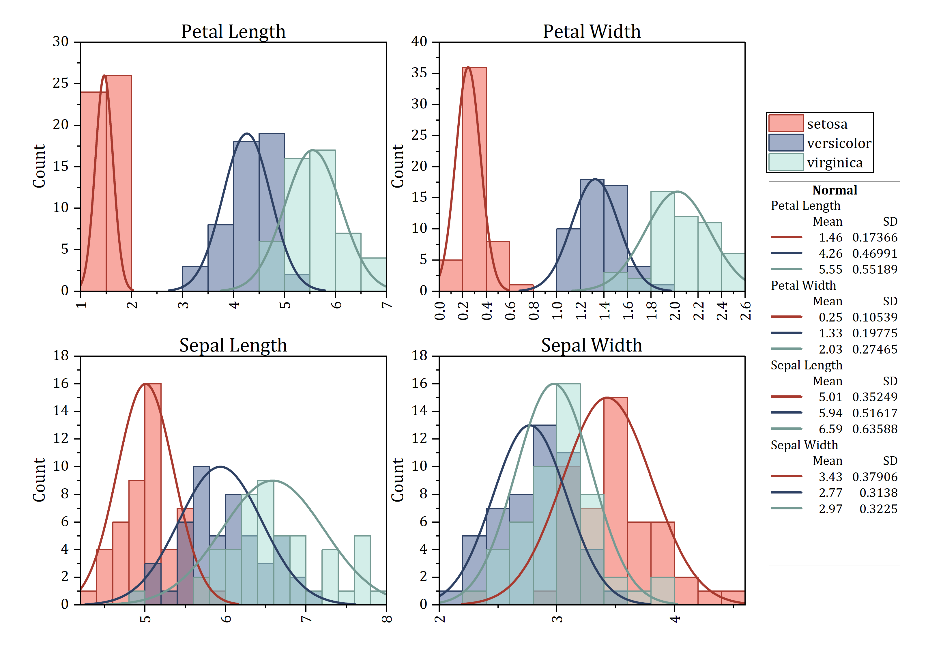 OriginPro 2026: Zusammenfassungsdiagramme können separate Grafiken oder nebeneinander angeordnete Grafiken zum einfachen Vergleichen sein.