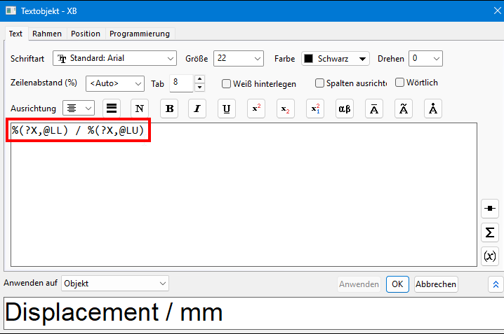 - Ersetzen Sie den im Textfeld vorhandenen String durch folgende Syntax:
