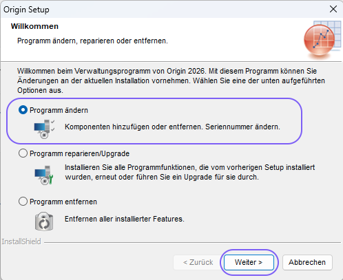 Sie können diesen aber auch später hinzufügen. Hierzu muss allerdings der Origin-Installer erneut ausgeführt werden. Gehen Sie hierzu bitte wie folgt vor: